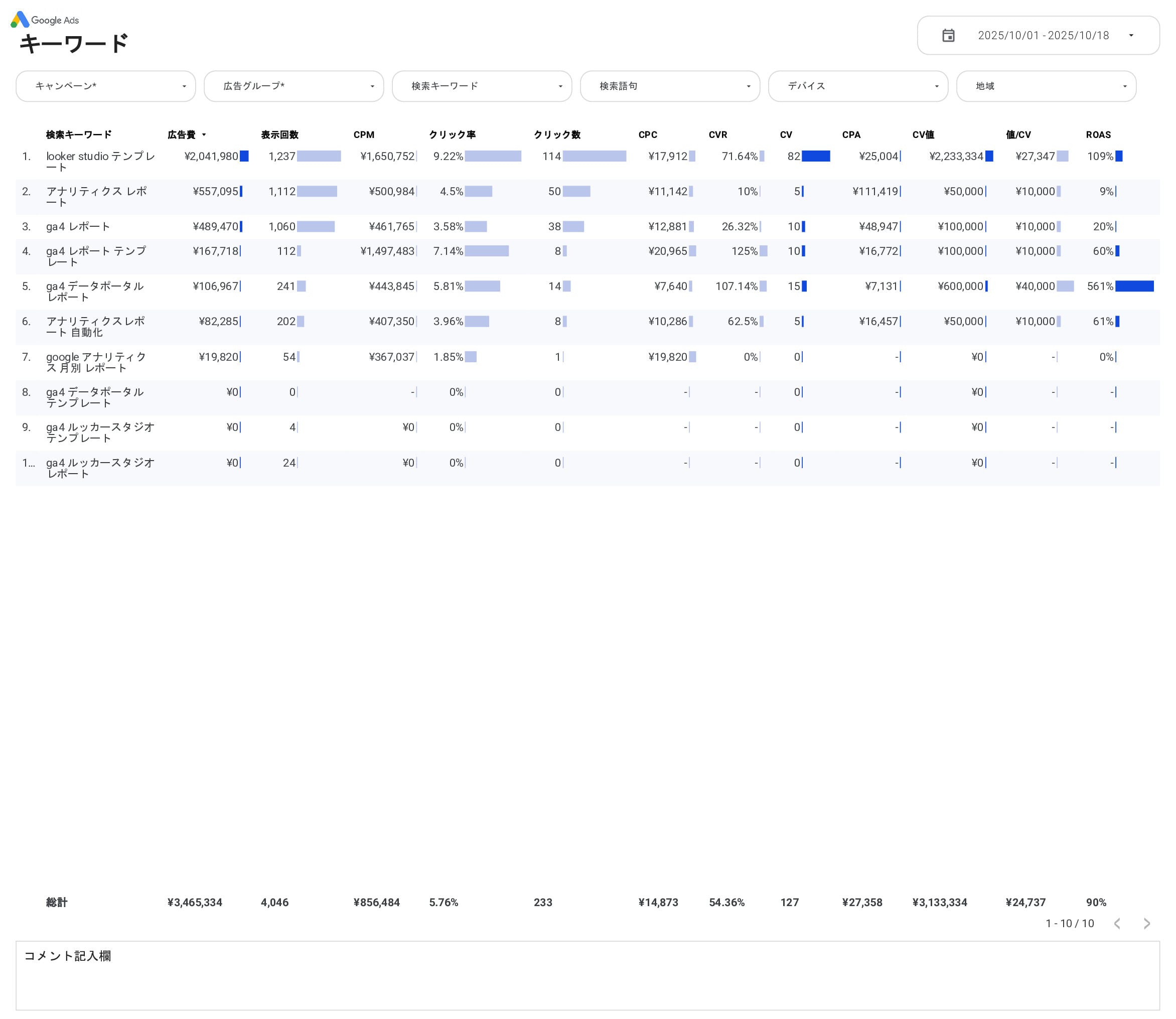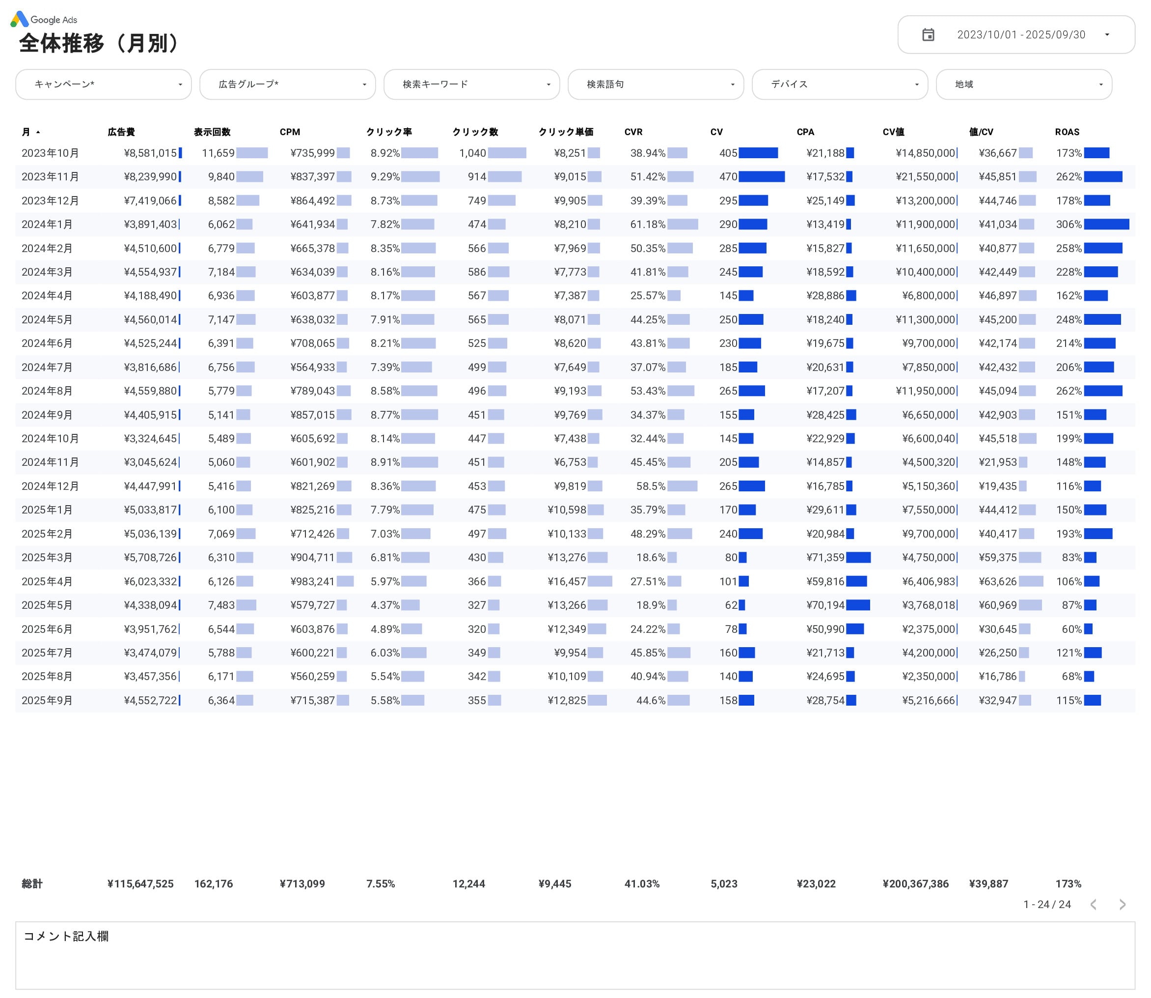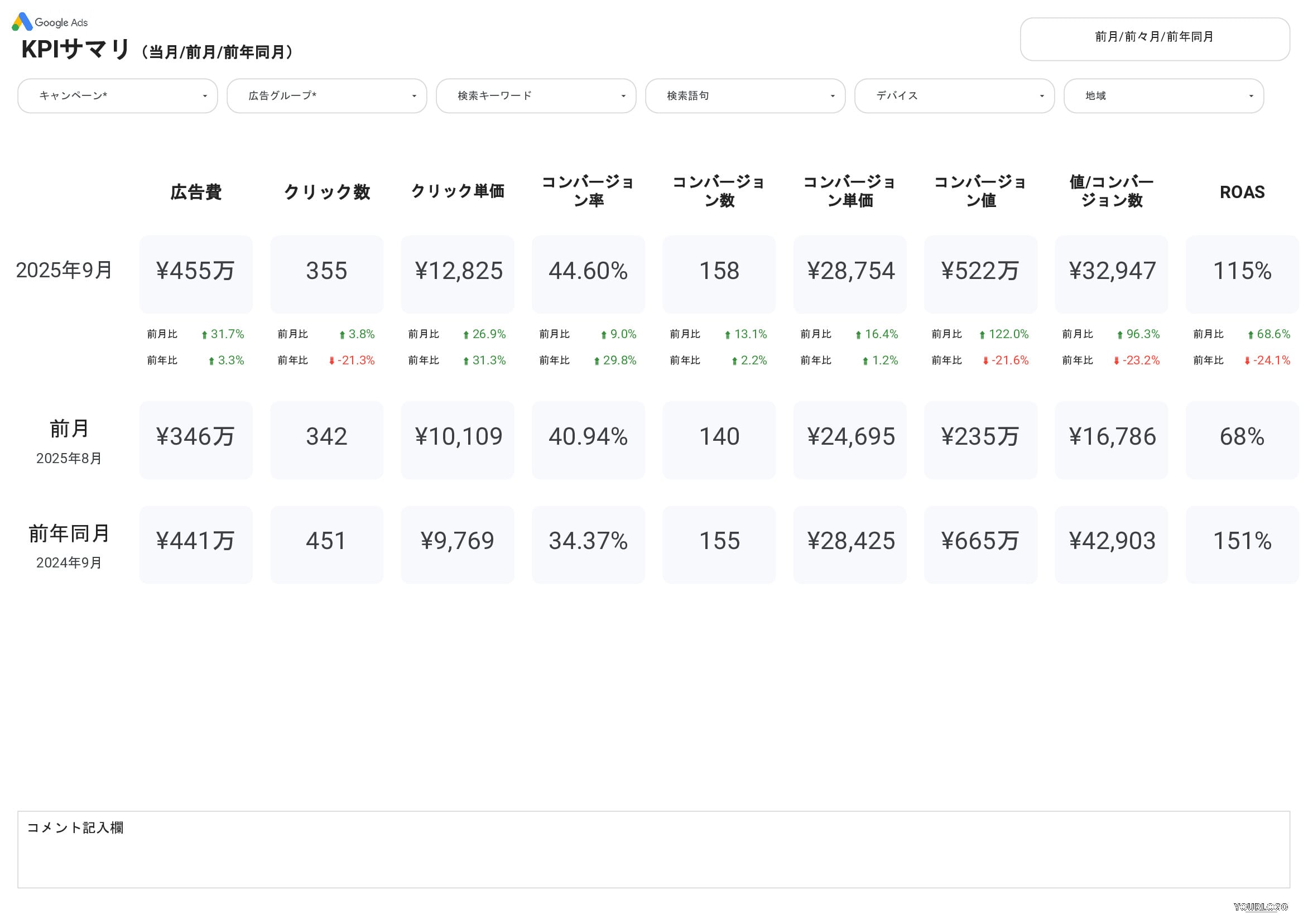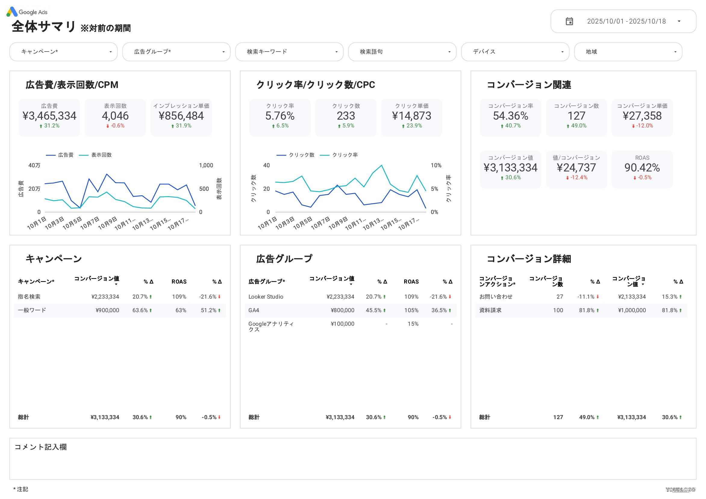 【買い切り版】値&ROAS対応 Google広告ベーシックレポートテンプレート for Looker Studio v1.0(4023)