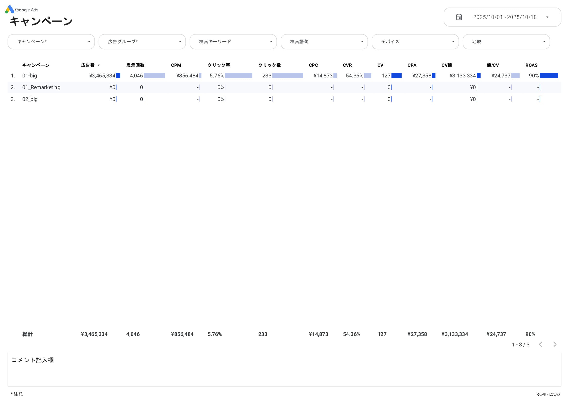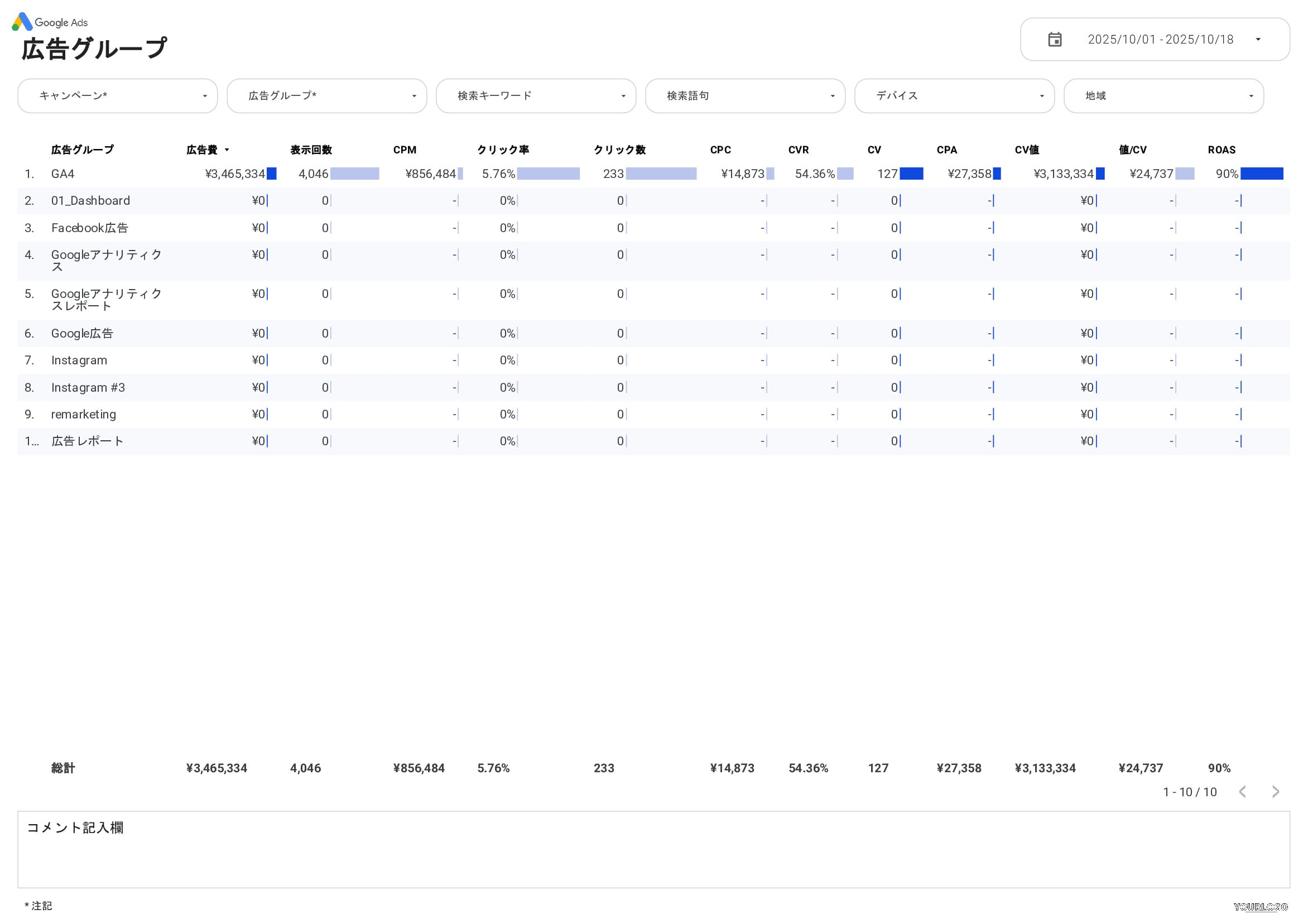 ※注:クリエイティブレポートが必要な方は、【サブスク版】Google広告レポート/クリエイティブレポート付き(0003)をご利用ください。