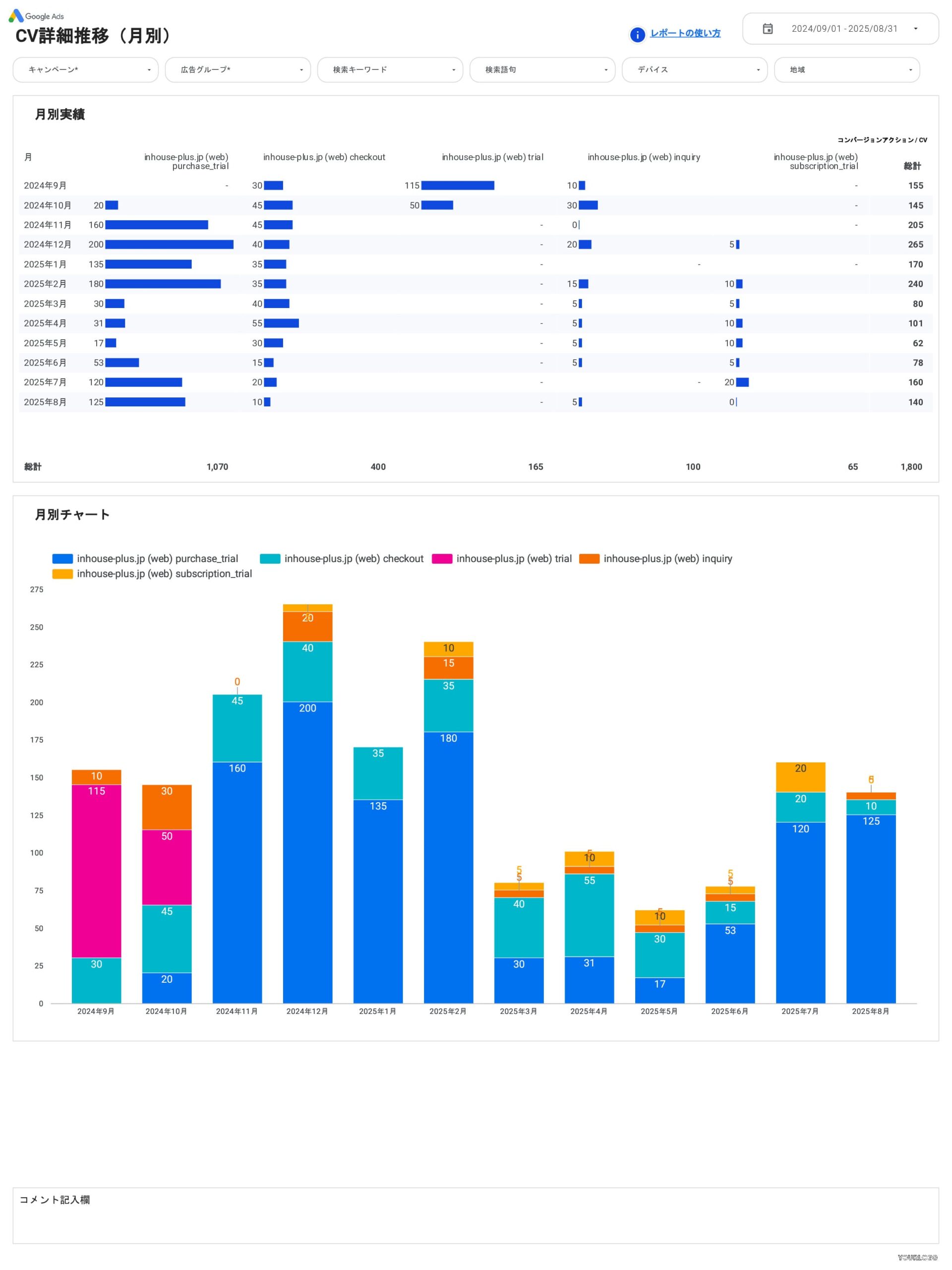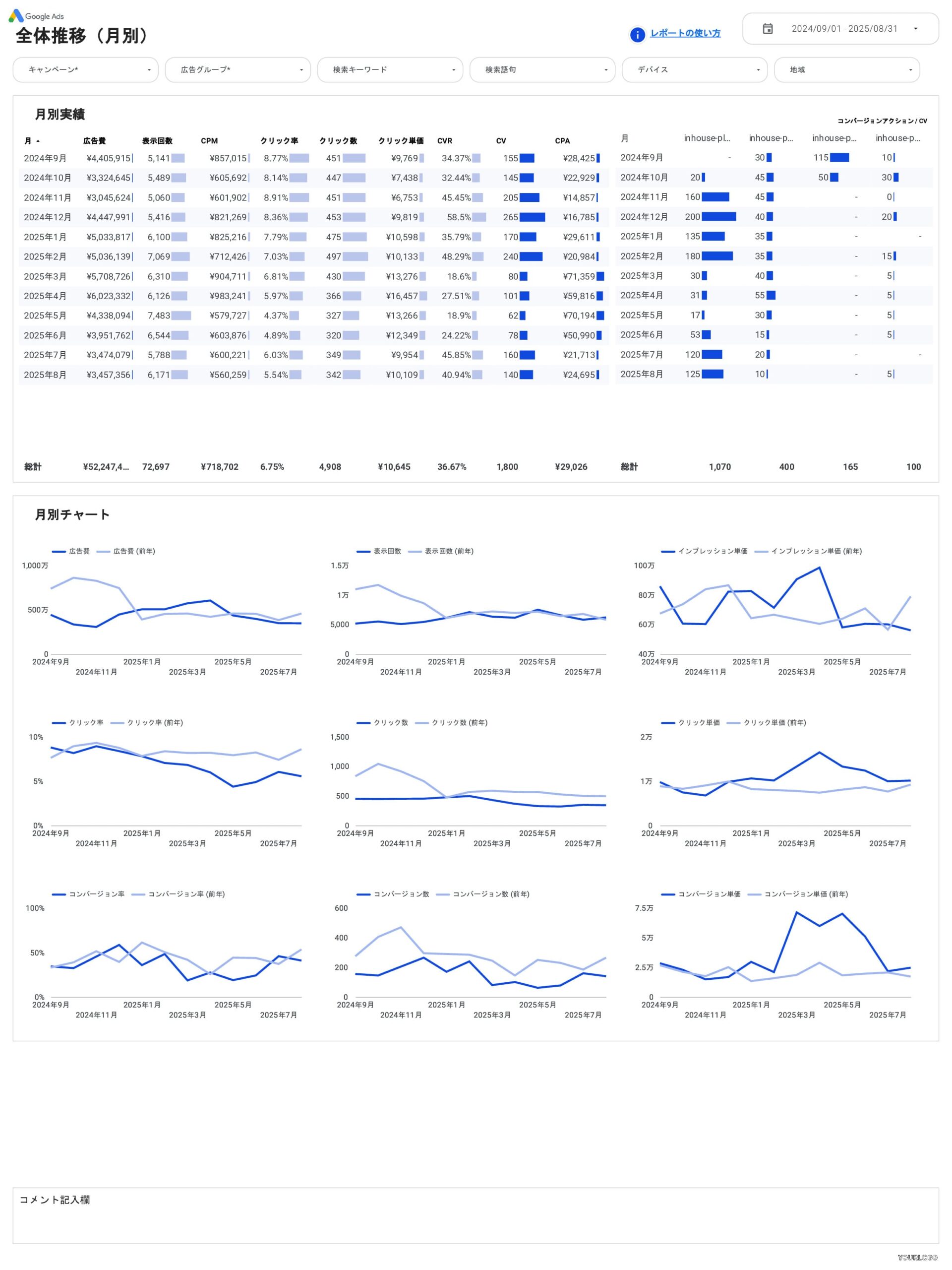 ※注:クリエイティブレポートが必要な方は、【サブスク版】Google広告レポート/クリエイティブレポート付き(0003)をご利用ください。