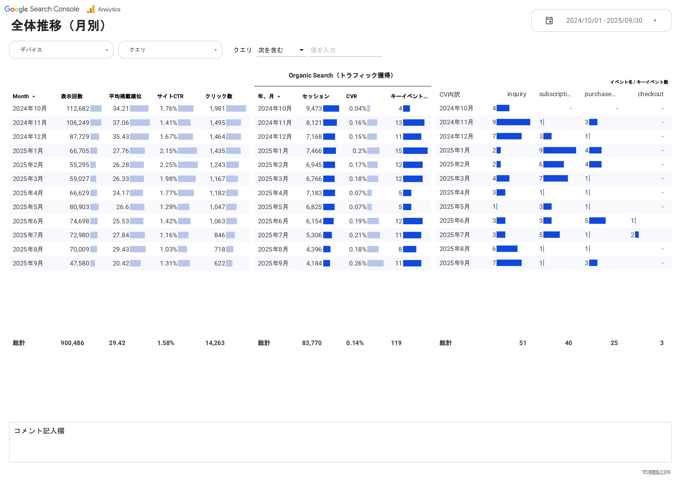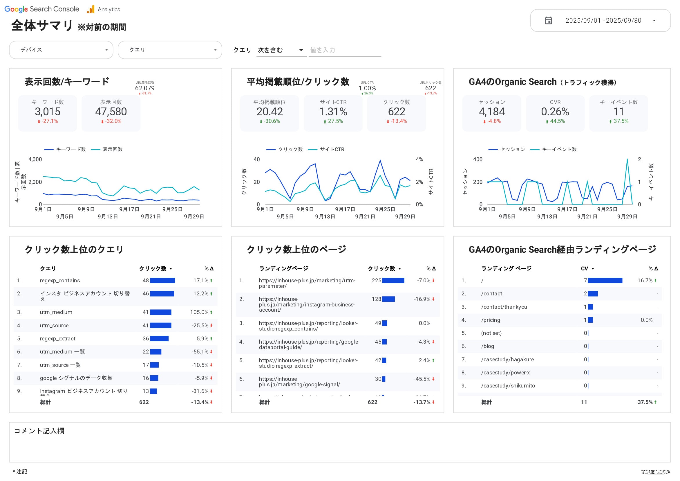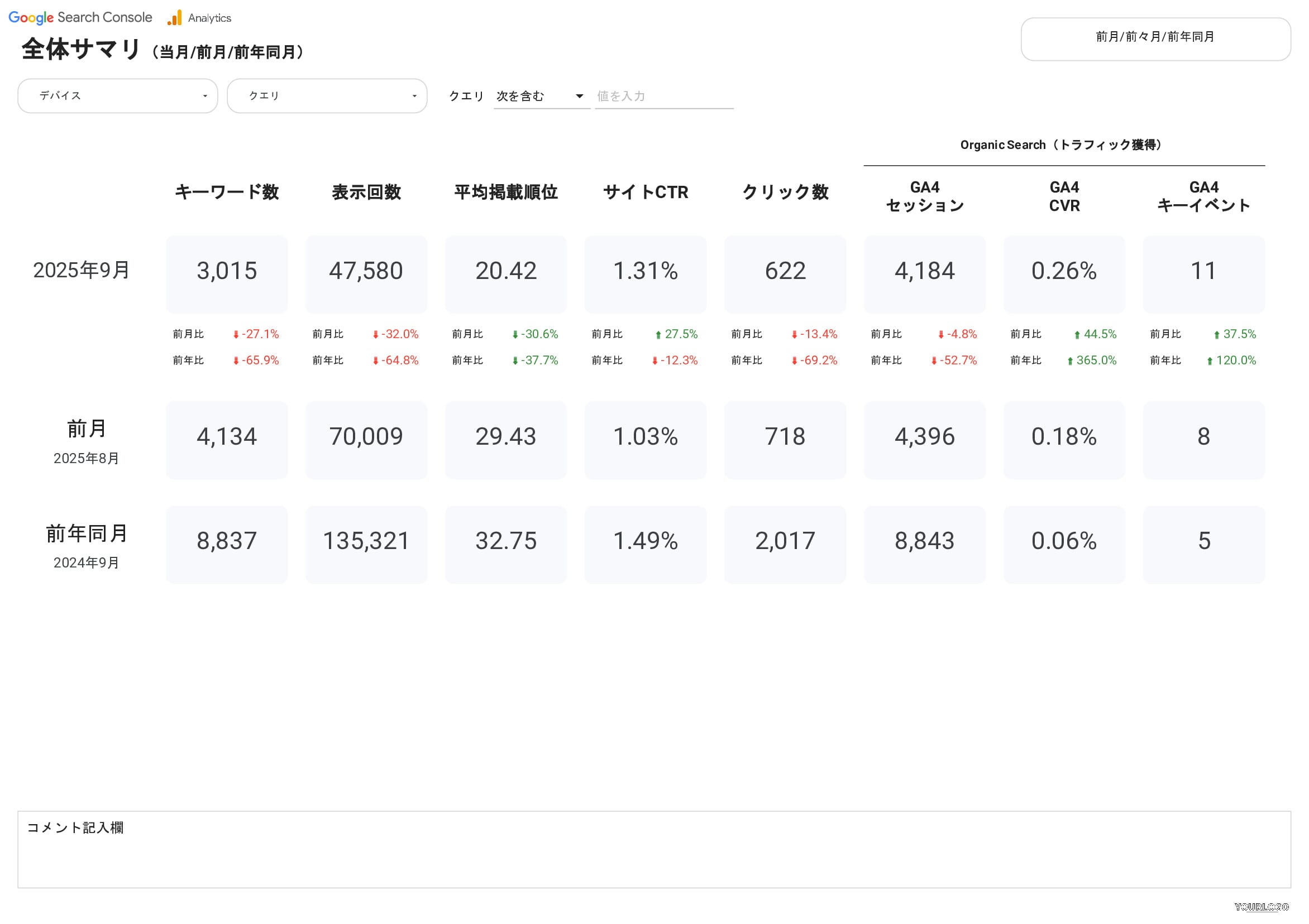 【買い切り版】SEOベーシックレポートテンプレート for Looker Studio v1.0(4020)