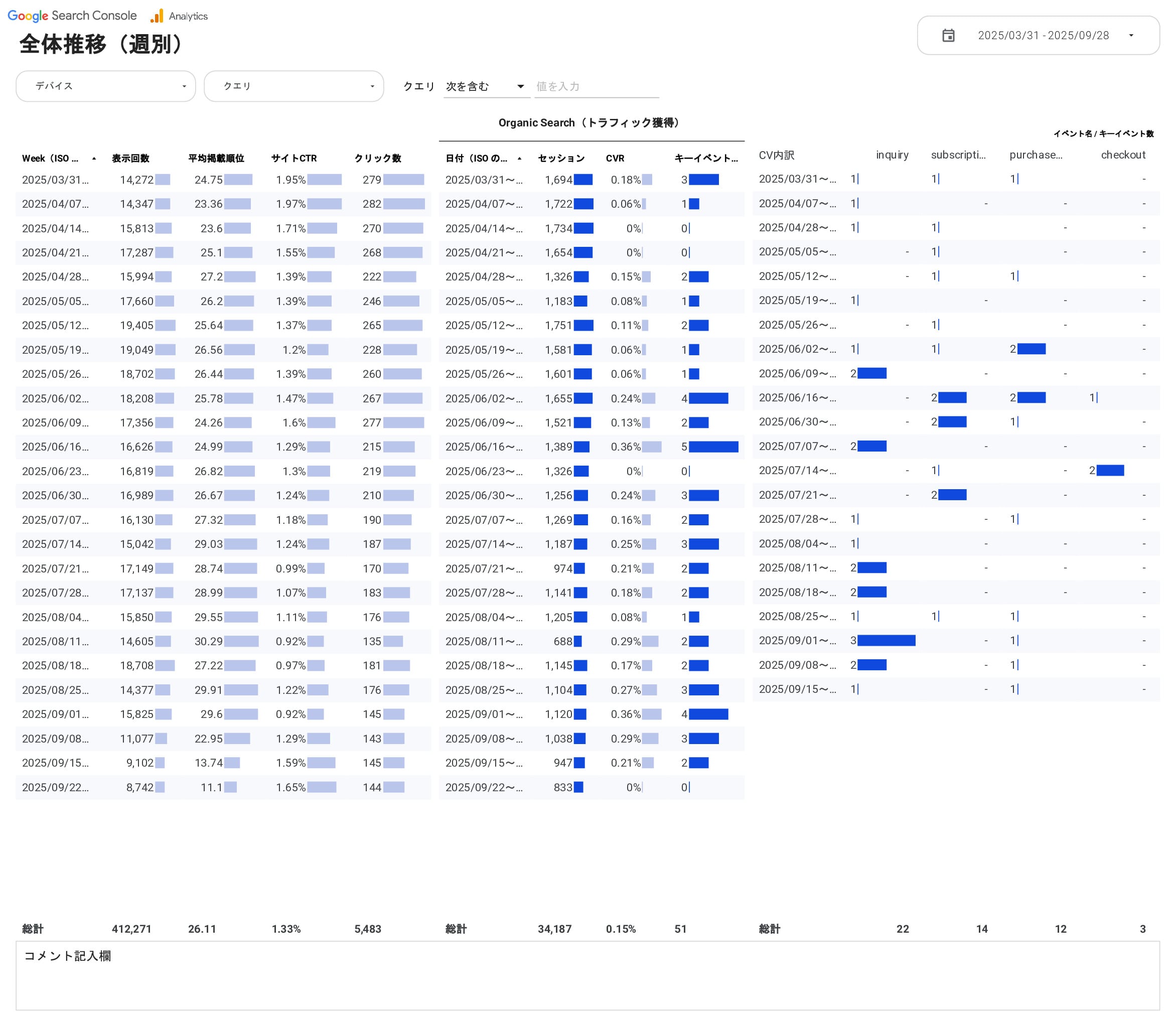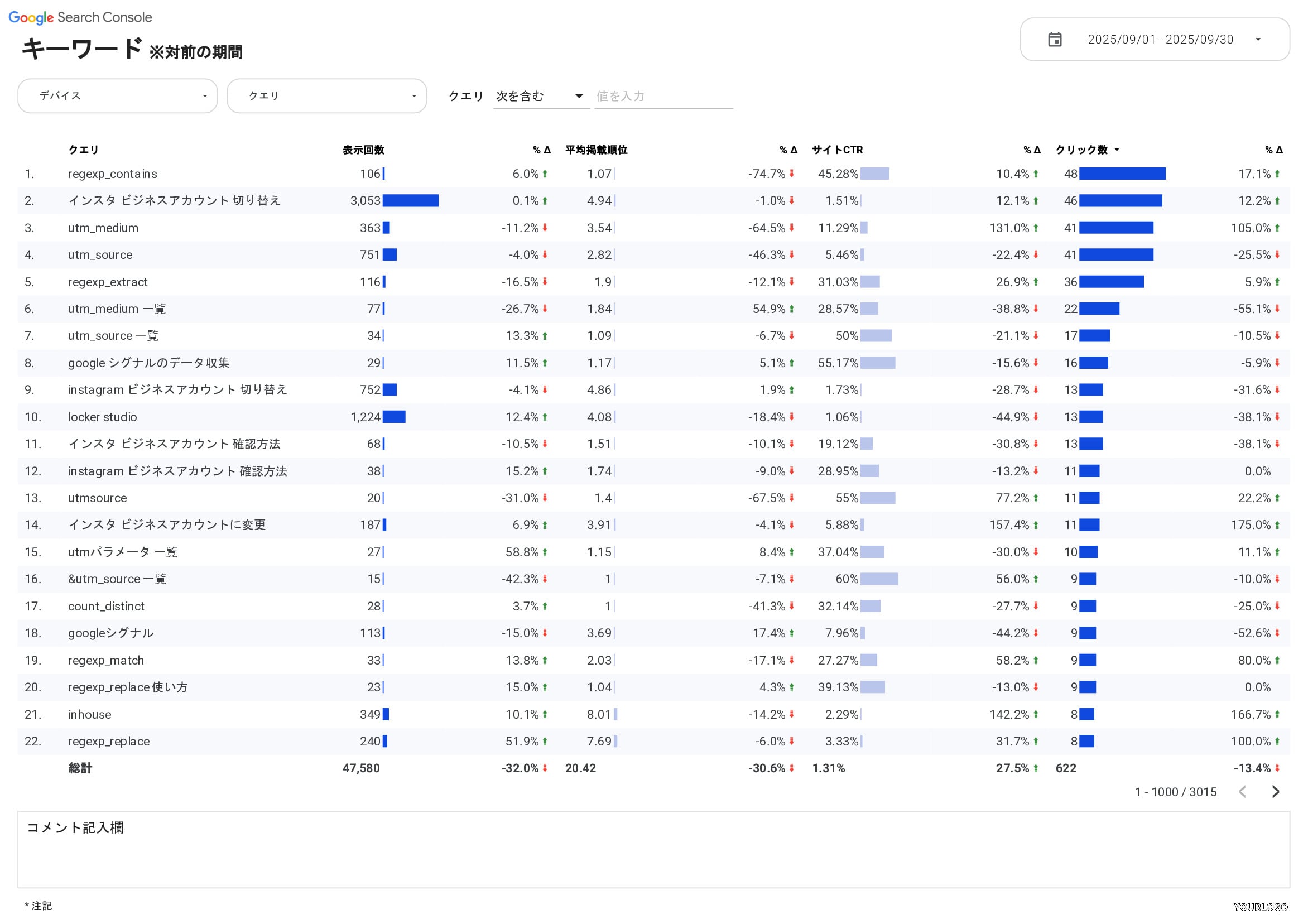 平均掲載順位 | 平均掲載順位 | 検索結果にサイトが表示されたときのサイトの平均掲載順位です。 |