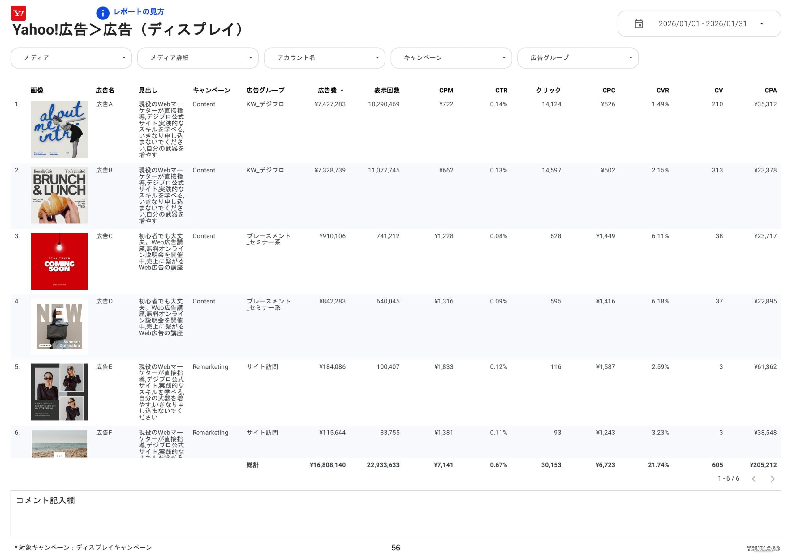 ![0008Web広告レポート①20260210_demo-56 [0008] Web広告レポート for Looker StudioのYahoo!広告広告クリエイティブ(ディスプレイ)](https://inhouse-plus.jp/wp-content/uploads/2026/02/0008Web広告レポート①20260210_demo-56-1612x1139.jpg)