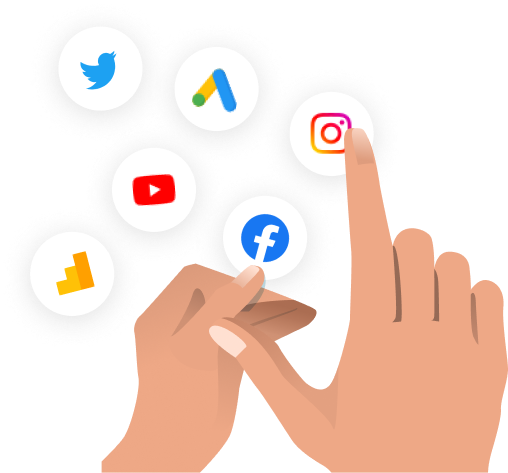 GA4レポートやGoogle広告レポート、Facebook広告レポートなど単体レポートももちろん可能ですが、GA4とサーチコンソールをまとめたレポートや、Google広告やFacebook広告などの複数のWeb広告データを一元化したレポート作成も可能です。もちろんCSVアップロード機能で追加したデータも一元化できます。
